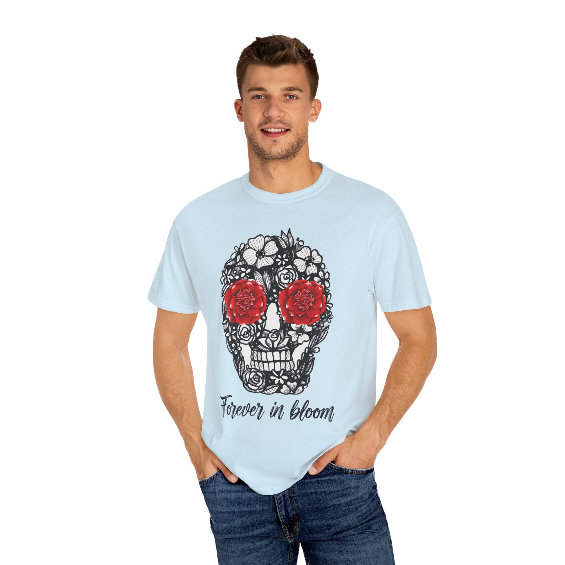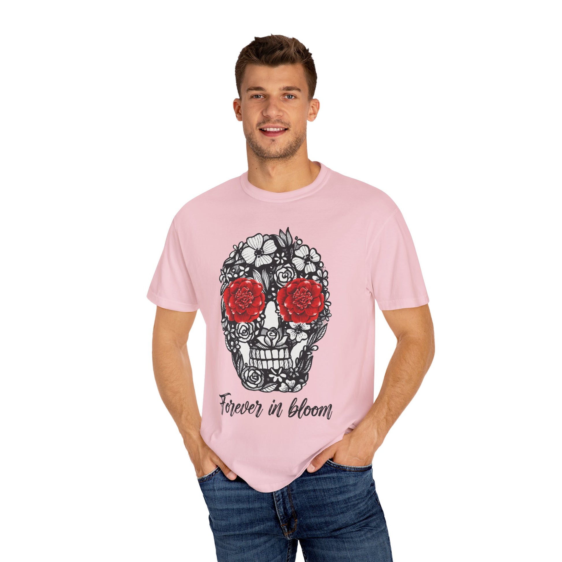 Show off your creative spirit with this unisex T-shirt featuring a bold floral skull and the phrase “Forever in Bloom.” Made from 100% ring-spun cotton, it’s soft, comfortable, and full of artistic energy ,perfect for everyday wear or any casual occasion.